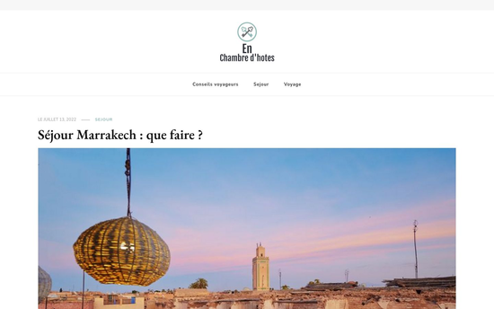Séjour et voyage en France et en Europe. Aller au contenu. En chambre d'hotes. Séjour et voyage en France et en Europe. Conseils voyageurs; Sejour; Voyage; le juillet 13, 2022 juillet 13, 2022 Sejour. Séjour Marrakech : que faire ? Marrakech est une ville fascinante qui offre aux visiteurs un large éventail d’activités. Que vous souhaitiez découvrir la richesse de son patrimoine…